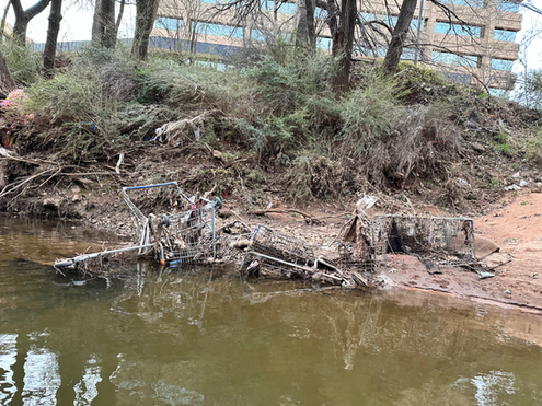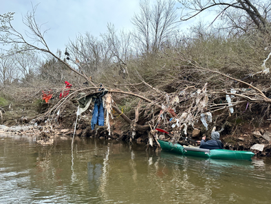 We are concerned citizens, and also members of the UCO (University of Central Oklahoma) community. From previous research projects in the OKC area, we recognized that the Deep Fork River (DFR) is an under-appreciated, neglected, and heavily impacted natural resource. We decided to photo-document the urbanized upper stretches of the DFR to help raise awareness of the condition of this important Oklahoma river. We floated the upper stretches of the river in kayaks in March of 2023, taking over 700 pictures of the river and its accumulated litter. You can see many of our pictures in the photo collages below.